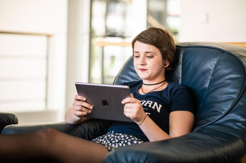Výhodou takto malé školy je bezesporu to, že se mezi sebou všichni dobře známe. A to nejen v ročníku, ale i napříč ročníky nebo s vyučujícími. Je to podpořeno také tím, jaké tady máme prostory. Třeba tzv. free zónu, kde si můžeme kdykoliv sednou a studovat. Když něčemu nerozumím, stačí se jenom otočit a vždycky mi někdo poradí. Zároveň si už teď sbírám kontakty a buduju vztah s lidmi, kteří jednou budou pracovat ve stejném oboru jako já. A člověk nikdy neví, kdy se mu některý z kontaktu bude hodit.